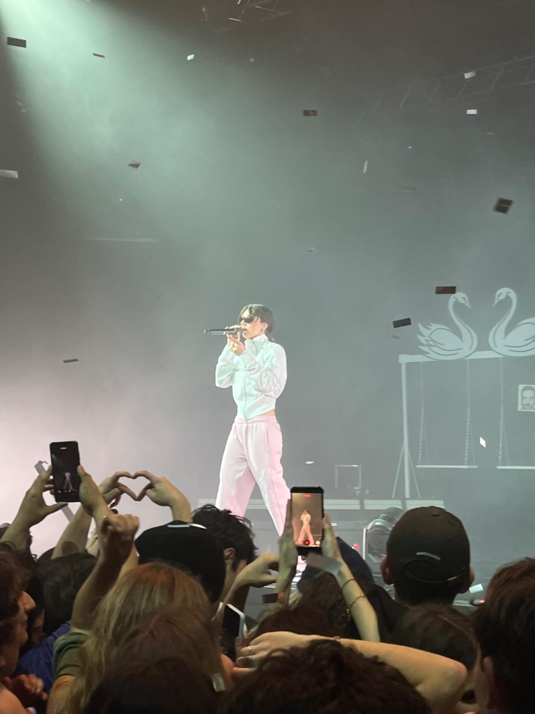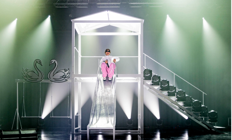 Una volta dentro all’Alcatraz, si percepisce subito un’atmosfera di attesa. Sul palco si vede una scenografia semplice, composta da una casetta come quelle dei parchi giochi, con due altalene e uno scivolo. La gente intorno a me, perlopiù dal target tra i venti e i trent’anni, parla nell’attesa che Ele A faccia il suo ingresso su quel palco. C’è una grande aspettativa essendo questa la prima data.