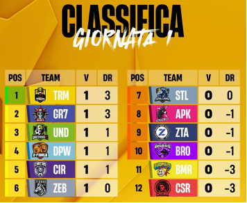La classifica, che, come l’anno scorso, garantirà alla prima classificata l’accesso alle semifinali, alle seguenti 5 l’accesso ai quarti mentre per le squadre tra la settima e la decima posizione i play in, dopo la prima giornata recita 6 squadre a 1 punto e le perdenti 6 a 0. Ancora presto per portare un commento preciso e degli incastri particolarmente utili per il campionato, ma pur sempre interessante dare un rapido sguardo alla differenza reti che, dopo la prima giornata, plasma le posizioni della classifica. In cima troviamo TRM FC e Gear 7 FC a +3 a discapito di Boomers e FC Caesar che per ora sarebbero fuori da tutto, tutte le altre a +1 e -1 sempre in ordine di chi ha segnato più gol e al centro, sesti e settimi, gli Zebras FC e gli Stallions con 0 di differenza reti e il solo punto guadagnato da Campolunghi agli shootout a dividerle.