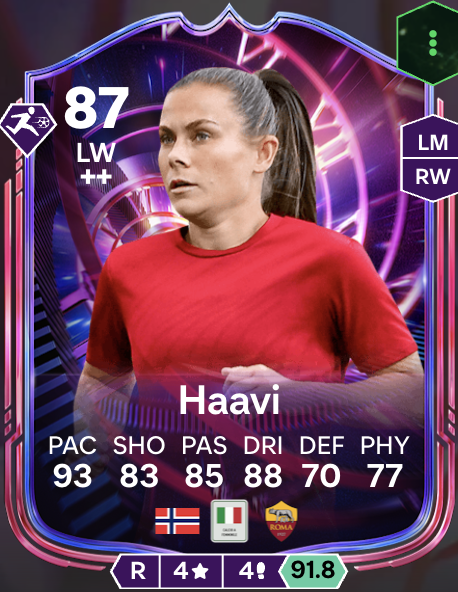 In questa promo oltre a due giocatori di Serie A troviamo anche una giocatrice della Roma femminile! Infatti, è presente l’ala sinistra norvegese Emilie Haavi, con valutazione 87 e rapido+ e delle statistiche mediamente buone tra cui spicca un notevole 93 in velocità. Per i rappresentanti maschili abbiamo i due opposti del campo: una punta centrale e un portiere. Come attaccante abbiamo il leggendario protagonista del Leicester di Ranieri nella vittoria della Premier League, ora in forza alla Cremonese, Jamie Vardy. La punta inglese per questa promo viene valutata 89 e con statistiche di tiro e velocità notevoli, insieme al quick step+, si potrebbe rivelare una carta insidiosa e spaccadifese in game.